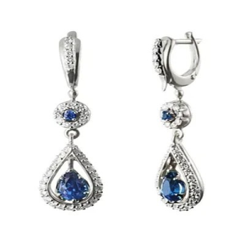 Шикарные серьги из белого золота с натуральными сапфирами и бриллиантами для торжественных случаев и важных событий.
