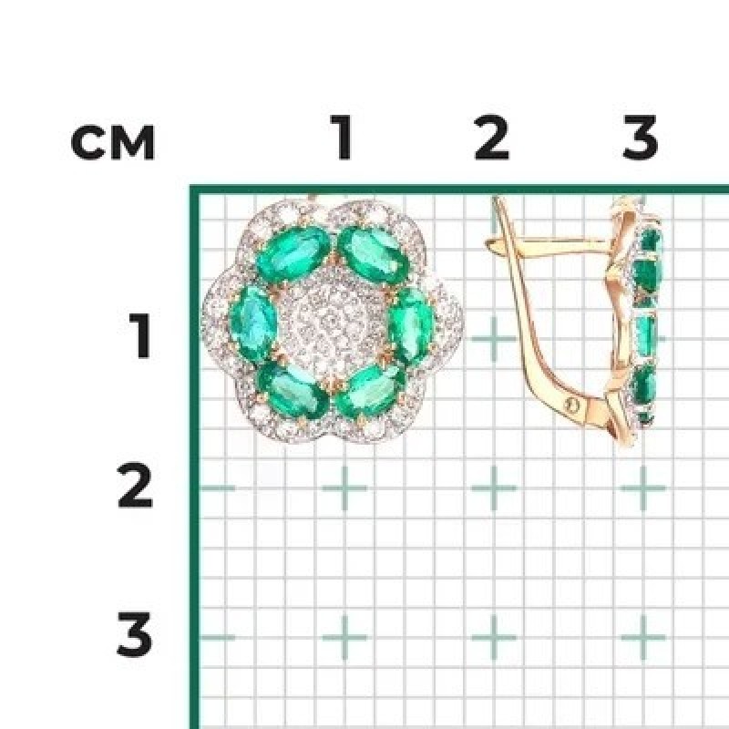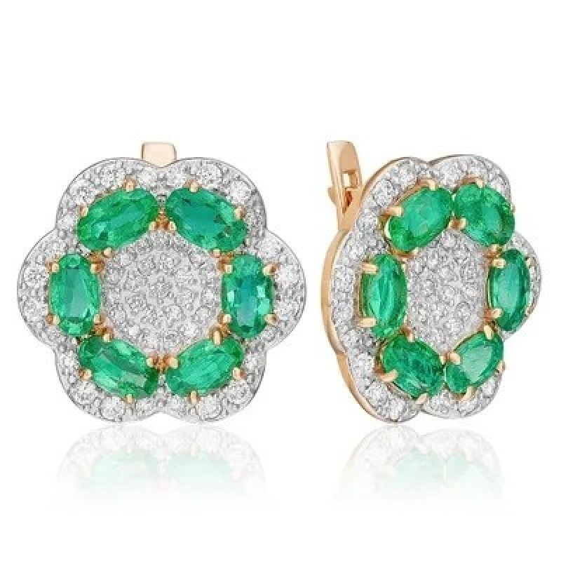PLATINA Серьги с английским замком из красного золота 585 пробы c изумрудами и бриллиантами