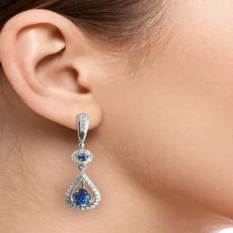 Шикарные серьги из белого золота с натуральными сапфирами и бриллиантами для торжественных случаев и важных событий.